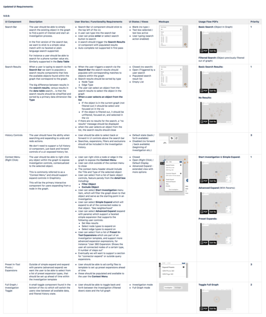 Our research base provided us with the insight we needed to start fleshing out an updated version of the software’s product requirements document, this time focused directly on a users ability to accomplish tasks within the interface.
